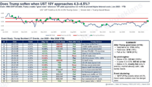 Karena dampaknya yang luas dan terjadi secara bersamaan, kisaran 4,3%–4,5% dapat dianggap sebagai zona sensitif bagi ekonomi AS. Makanya tak heran, setiap kali yield mendekati level ini, Trump seolah-olah memberikan sentimen positif yang dapat meredakan tekanan tersebut.